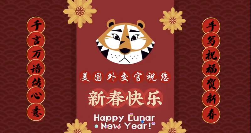 美国驻华使团临时代办米德伟表示,自1995年起,他和家人年年都会庆祝春节,因此了解这一个节日的特殊意义。“我想和我的同事们一起向大家致以美好祝福。春节快乐、虎年大吉!”